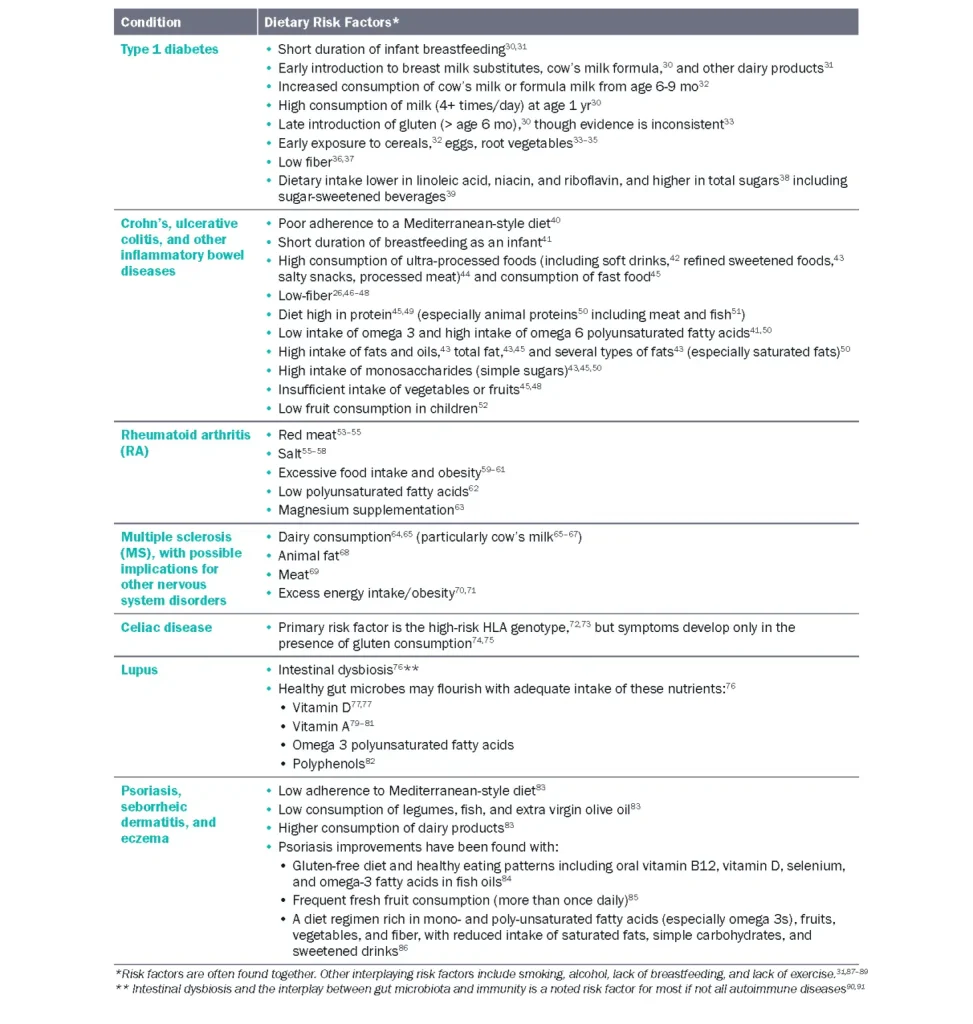 Table 1 Dietary factors related to autoimmune conditions